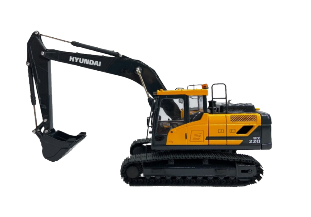 A 1:35 scale miniature made based on official data on the HX220 Crawler Excavator by Hyundai Construction EquipmentModel Size(mm) : 10.5"(L)*3.5"(W)*4"(H)Target User : Aged 14 or over